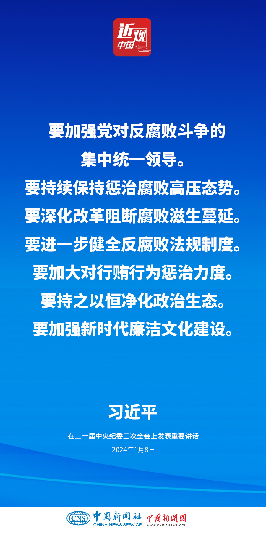 中共中央總書(shū)記、國(guó)家主席、中央軍委主席習(xí)近平8日上午在中國(guó)共產(chǎn)黨第二十屆中央紀(jì)律檢查委員會(huì)第三次全體會(huì)議上發(fā)表重要講話。他強(qiáng)調(diào)——