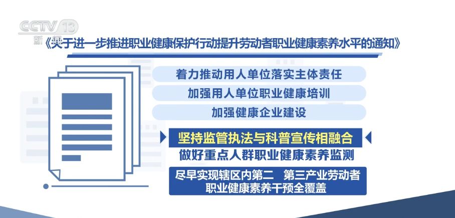央視網(wǎng)消息:國(guó)家衛(wèi)生健康委、國(guó)家疾控局、教育部等八部門(mén)近日聯(lián)合印發(fā)《關(guān)于進(jìn)一步推進(jìn)職業(yè)健康保護(hù)行動(dòng)提升勞動(dòng)者職業(yè)健康素養(yǎng)水平的通知》。《通知》明確,進(jìn)一步加強(qiáng)職業(yè)健康管理,加大重點(diǎn)人群職業(yè)健康素養(yǎng)干預(yù)力度,到2030年,力爭(zhēng)實(shí)現(xiàn)重點(diǎn)行業(yè)勞動(dòng)者對(duì)本崗位主要危害及防護(hù)知識(shí)知曉率不低于90%。