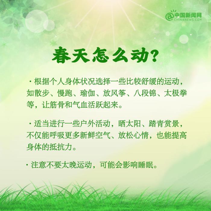 春天是萬物復(fù)蘇的季節(jié),也是調(diào)養(yǎng)身體的好時節(jié)。①每天保證6~8小時的睡眠,避免熬夜;②適當進行一些戶外活動,曬太陽、踏青賞景等;③不過早減衣,穿衣注意下厚上薄;④注意清淡飲食,多吃蔬菜,多喝水……春季養(yǎng)生要注意什么?詳戳↓↓