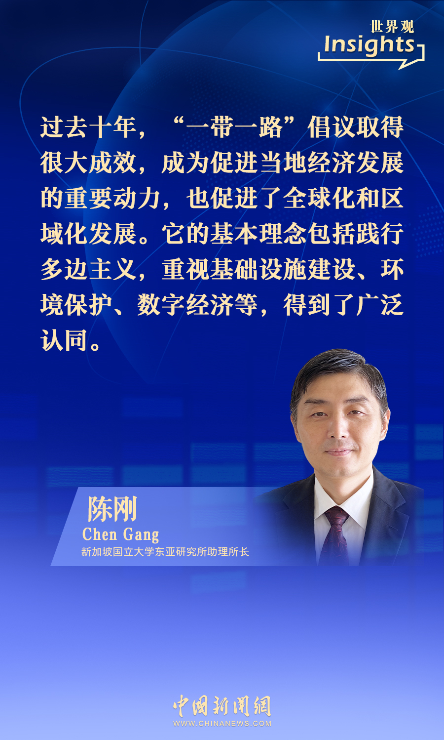 陳剛舉例說(shuō),過(guò)去十年,“一帶一路”倡議取得很大成效,成為沿線國(guó)家經(jīng)濟(jì)發(fā)展的重要?jiǎng)恿Γ泊龠M(jìn)了全球化和區(qū)域化發(fā)展。它的基本理念包括踐行多邊主義,重視基礎(chǔ)設(shè)施建設(shè)、環(huán)境保護(hù)、數(shù)字經(jīng)濟(jì)等。這一倡議,在世界范圍內(nèi)得到了廣泛認(rèn)同。