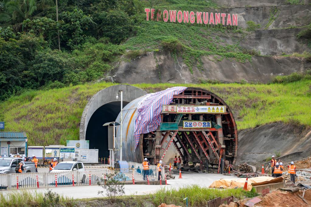 這是3月6日在馬來西亞彭亨州拍攝的馬來西亞東海岸鐵路(馬東鐵)關(guān)丹隧道施工現(xiàn)場(chǎng)。