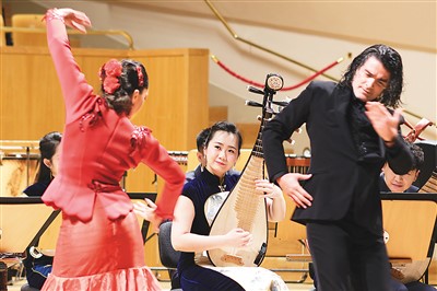 音樂會在一曲熱烈歡快的《春節(jié)序曲》中拉開序幕。兩國樂團合奏的新創(chuàng)曲目《陽光永遠照耀著我們的友誼》融合了中西音樂特色,令觀眾耳目一新;京劇《貴妃醉酒》向西班牙觀眾展現(xiàn)了中國傳統(tǒng)戲曲文化的獨特風采;西班牙歌唱家用中文和西文演唱《我愛你中國》,以歌聲傳遞了兩國民眾間的友好情誼;中國樂器笙演奏的《西班牙斗牛曲》“混搭”西班牙“國粹”弗拉門戈舞蹈,更是令人擊節(jié)叫好。兩國藝術家以樂會友、以藝通心,通過中西音樂元素的碰撞與交融,展現(xiàn)了東西方文化的互融互鑒。
