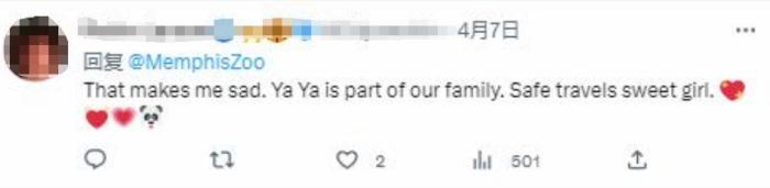 還有不少不能到現(xiàn)場(chǎng)的“丫丫”粉絲,在孟菲斯動(dòng)物園社交媒體賬號(hào)下留言,用暖心的話語和“丫丫”說再見。