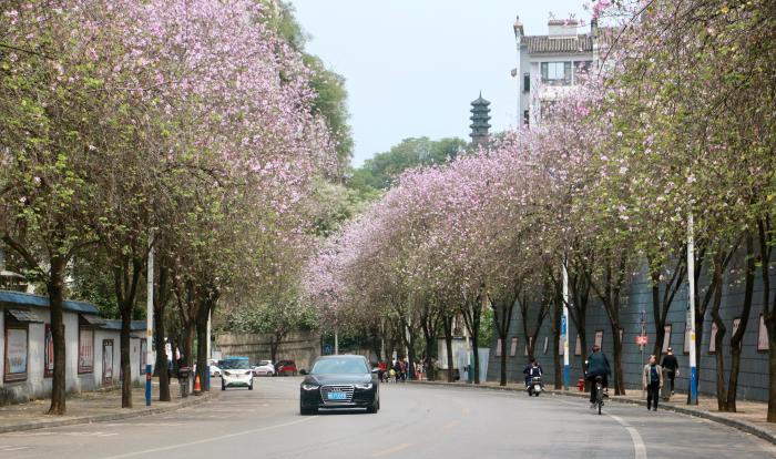 人間四月天,廣西柳州市近30萬株洋紫荊盛放。放眼望去,整座城市沉浸在粉色的花海里。柳州市洋紫荊盛放密集路段,均被賞花游人“占領(lǐng)”,在花海里徜徉、打卡。