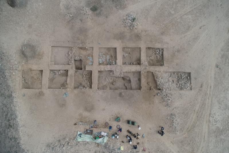 目前,遺址區(qū)和墓葬區(qū)發(fā)掘工作正在有序進(jìn)行。發(fā)現(xiàn)遺跡有石墻、甕棺、灰堆等,出土遺物有陶片、石器、骨器、毛織品等,陶片中有彩陶。墓葬區(qū)發(fā)現(xiàn)墓葬等,出土遺物有陶片、海貝等。