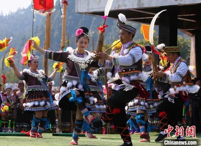 苗族民眾在跳蘆笙舞。龍林智 攝
