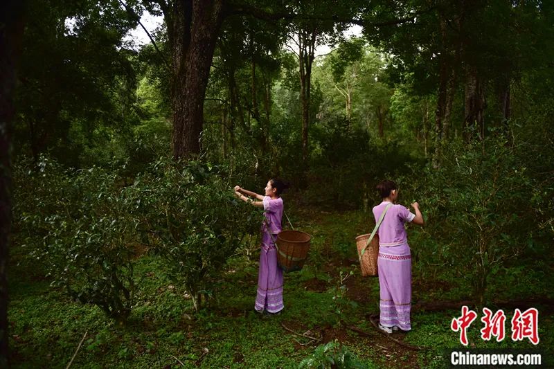 2016年5月,云南普洱,當(dāng)?shù)卮迕裨诰斑~山古茶園采茶,這里的茶樹樹齡大多在百年以上。劉冉陽 攝