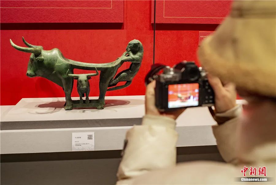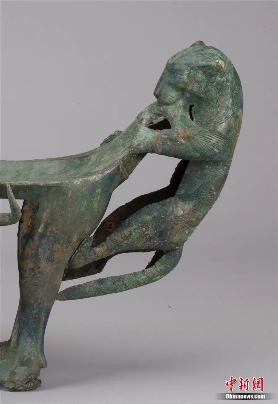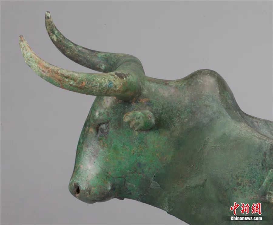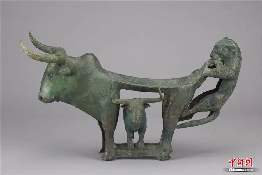 此外,還有專家延伸解讀:在古滇國(guó),虎為百獸之王,象征權(quán)威,牛則是財(cái)富和生命的標(biāo)志。牛虎銅案中的虎、牛形象成為滇人重點(diǎn)表達(dá)的主題,顯示了滇人崇虎、崇牛之情,表達(dá)了對(duì)權(quán)力、財(cái)富和生命的向往。