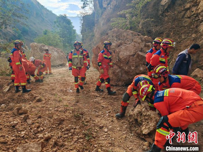 圖為消防指戰(zhàn)員正在地震現(xiàn)場(chǎng)開展救援?!≡颇鲜∠谰仍傟?duì)供圖