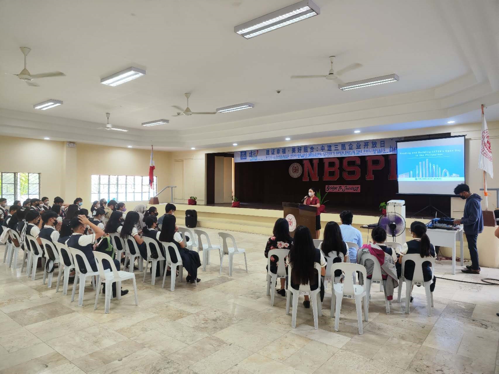 人民網(wǎng)訊 5月4日,中國(guó)建筑第三工程局有限公司(中建三局)走進(jìn)菲律賓新布萊頓學(xué)校,舉辦文化開放日閱讀分享會(huì)。中建三局青年員工,菲律賓新布萊頓學(xué)校高二、高三學(xué)生,校方代表等60余人參加活動(dòng),交流閱讀體驗(yàn)。