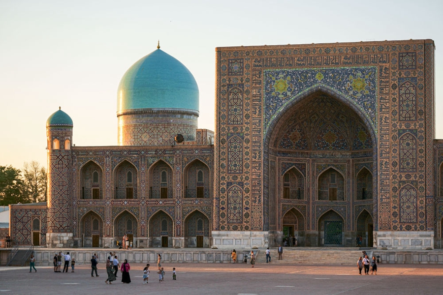 ↑烏茲別克斯坦撒馬爾罕市列吉斯坦廣場。