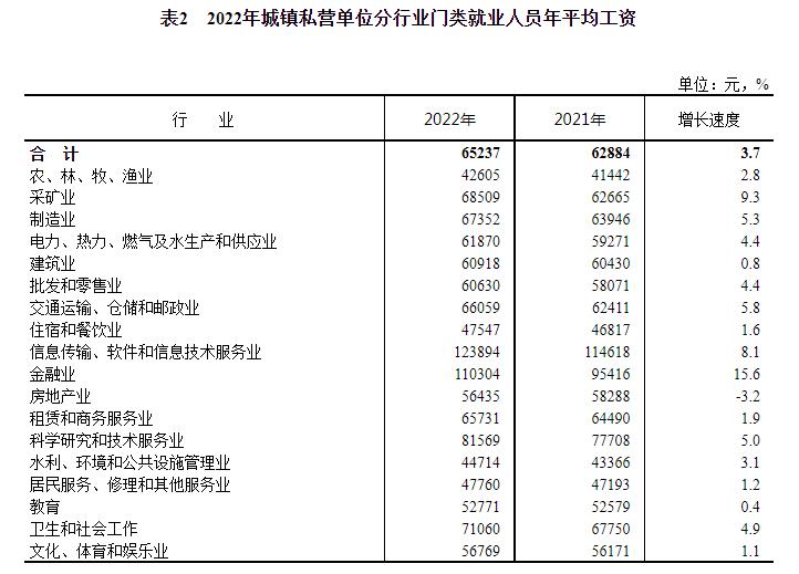 2022年城鎮(zhèn)私營(yíng)單位分行業(yè)門(mén)類(lèi)就業(yè)人員年平均工資。來(lái)自國(guó)家統(tǒng)計(jì)局網(wǎng)站