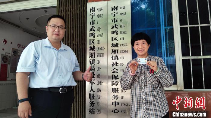 梁洲輔5月11日順利幫助母親辦理了武鳴區(qū)城鄉(xiāng)居民基本養(yǎng)老保險和醫(yī)療保險,并成為廣西首例辦理了臺灣居民居住證但沒有在當(dāng)?shù)鼐蜆I(yè),亦可成功辦理城鄉(xiāng)居民基本養(yǎng)老保險的臺胞。梁洲輔為母親按每年6000元(人民幣,下同)進(jìn)行繳費,一次性補(bǔ)繳了15年共9萬元的養(yǎng)老金。今年6月起,張月霞每月便可領(lǐng)到800多元的養(yǎng)老金。當(dāng)天,張月霞也成功辦理了城鄉(xiāng)居民基本醫(yī)療保險。