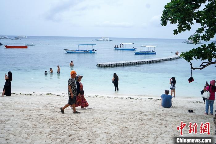 資料圖為1月23日,游客在菲律賓保和島海灘邊游玩。 中新社記者 張興龍 攝