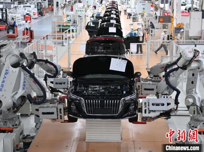 在吉林長春的中國一汽紅旗制造中心繁榮廠區(qū),全自動(dòng)機(jī)械手臂在裝配輪胎。智能化、自動(dòng)化、無人化成為生產(chǎn)生活發(fā)展的趨勢。張瑤 攝