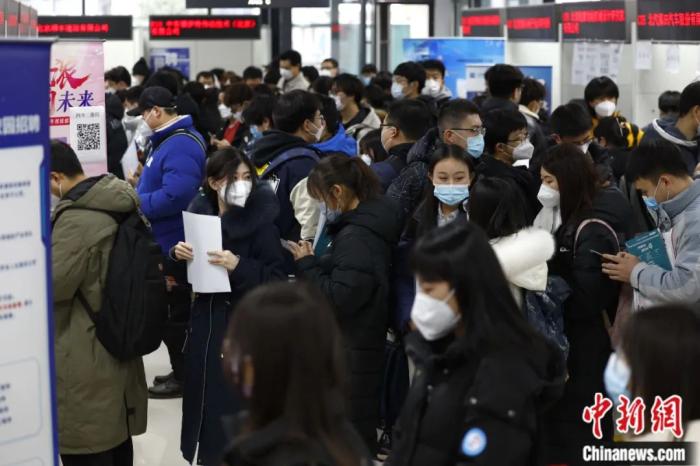 2023年2月8日,北京市教委所屬北京高校大學(xué)生就業(yè)創(chuàng)業(yè)指導(dǎo)中心迎來春季首場線下雙選會,應(yīng)聘者排隊(duì)等候向用人單位提交個(gè)人簡歷。富田 攝
