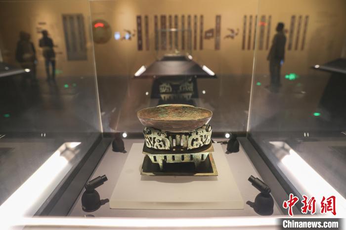 與青銅溫鼎相配套的青銅染爐,宴飲時(shí)一人一套,隨吃隨“染”。 中新社記者 劉力鑫 攝