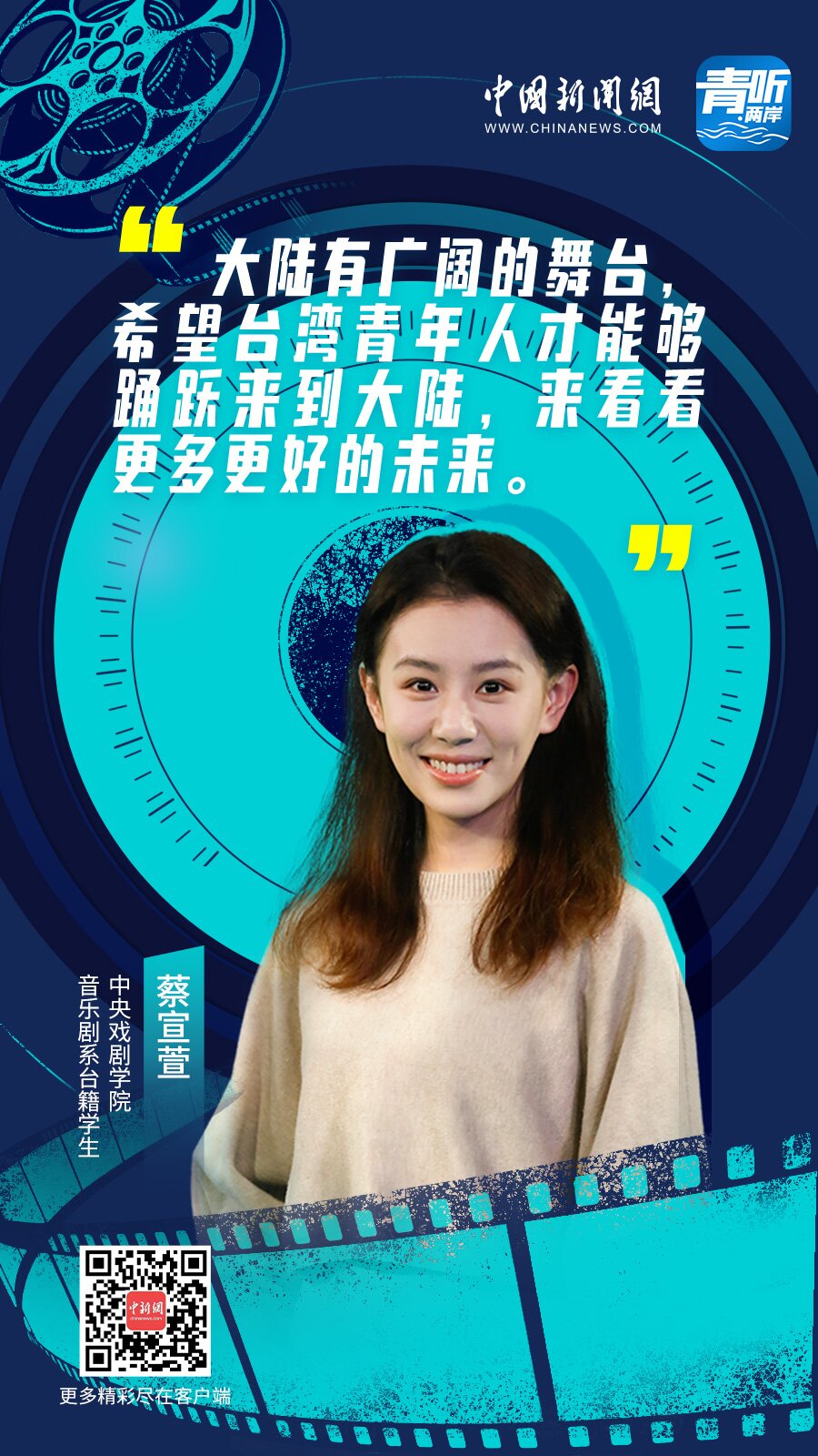 同在大陸追逐夢想的還有臺(tái)籍學(xué)生蔡宣萱,目前她正在在中央戲劇學(xué)院音樂劇系攻讀研究生。此前她也有過較多的參演經(jīng)歷,但最令她難忘的則是大四時(shí)與同學(xué)們一起排練畢業(yè)大戲的場景。