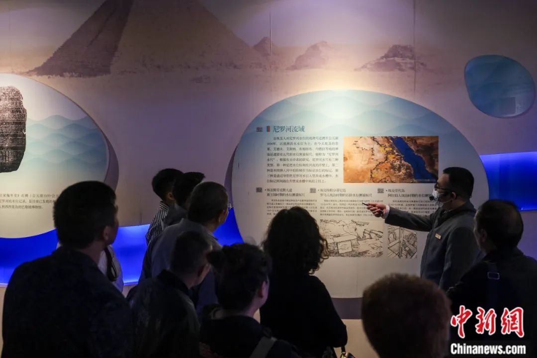 白鶴梁水下博物館講解員向游客介紹尼羅河流域水位測量標(biāo)尺——“尼羅尺”。何蓬磊 攝