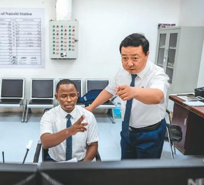 毛鑫是非洲之星鐵路運營公司運輸部內羅畢車站運轉主任,他與徒弟彼得·恩堅加一起制定調度計劃、調控列車運轉?!拔覀儫o保留地把國內的技術標準帶到肯尼亞,學員已達到國內車站同等作業(yè)標準?!泵握f,幫助肯尼亞建設第一條現代化鐵路,是他人生中的亮點。彼得表示,自己從師父身上學到了許多專業(yè)技術,未來他將把知識傳授給更多人。