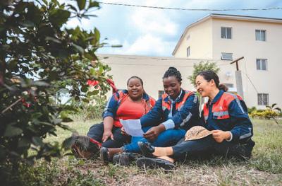中國師父陳玲(右)是非洲之星鐵路運營公司工電部電子設備檢修工區(qū)工長。在肯尼亞工作4年來,她見證了女學員們電務技術的成長?!艾F在她們都能獨當一面?!标惲嵴f。朱迪思(左)是陳玲的學員之一,她從師父那里獲得的不僅是技術,工作間隙對飲食、文化等多維度的交流同樣讓她受益匪淺?!拔覀冎g是師徒,更是姐妹?!敝斓纤颊f。圖為陳玲在休息時教學員唱中文歌曲。