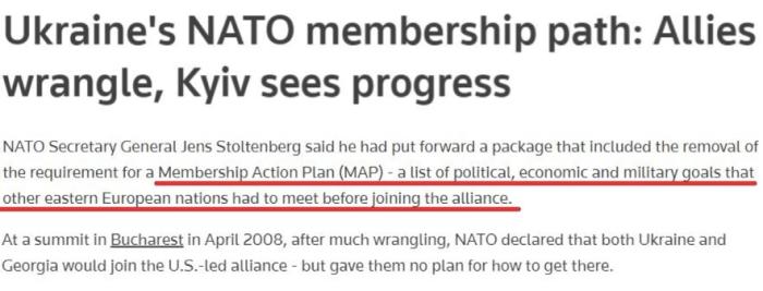 報(bào)道稱,北約“成員國(guó)行動(dòng)計(jì)劃”(MAP)設(shè)定了候選國(guó)加入北約這個(gè)軍事聯(lián)盟之前,需要達(dá)到的政治、經(jīng)濟(jì)和軍事指標(biāo)。這也是其他東歐國(guó)家在加入北約前曾不得不滿足的硬性要求。這樣看來(lái),烏克蘭的入約門檻已經(jīng)變低了。