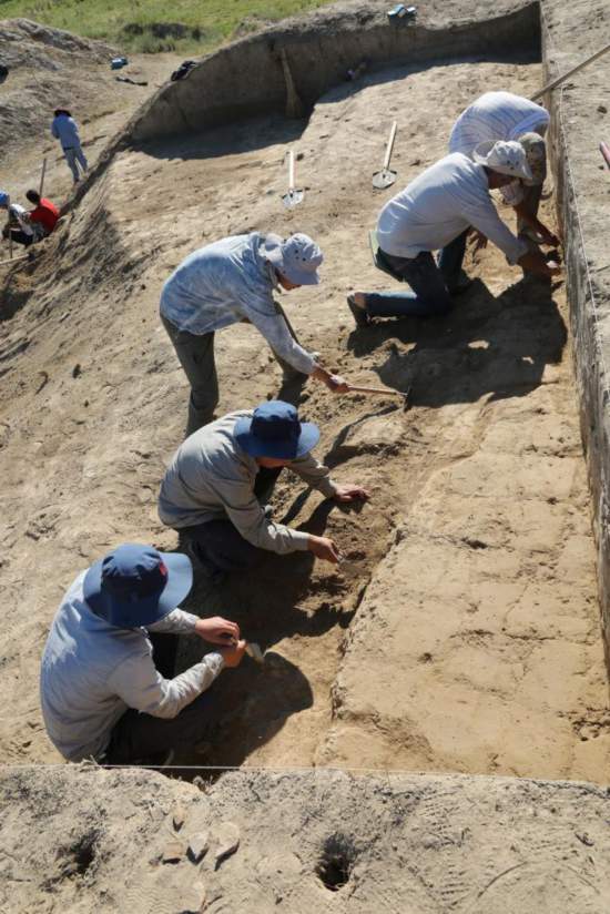2018年7月5日,中國和吉爾吉斯斯坦考古人員聯(lián)合發(fā)掘吉爾吉斯斯坦紅河古城西側佛寺遺址。新華社發(fā)(受訪者供圖)