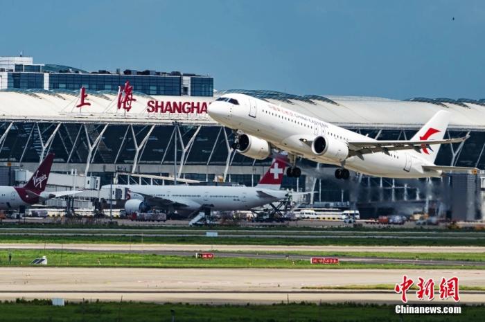 7月16日,東航第二架國產(chǎn)C919大型客機(jī)從浦東機(jī)場起飛。