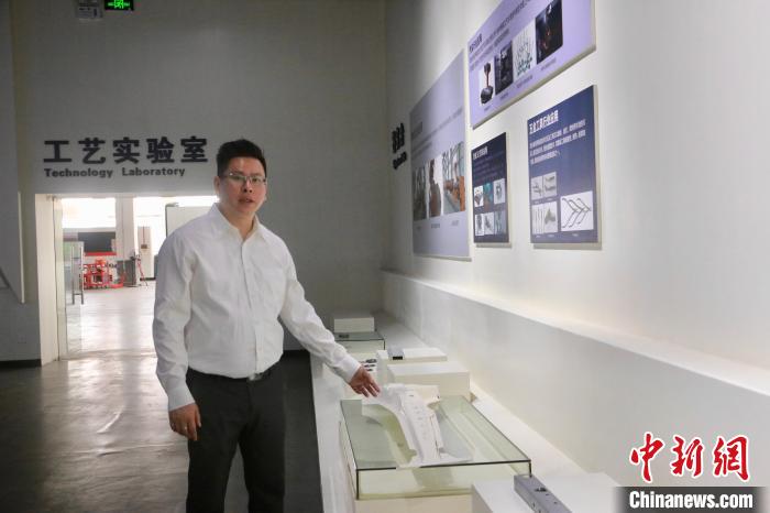 臺青孫弘明介紹柳州宏德激光科技有限公司研發(fā)的激光加工自動線。林馨 攝