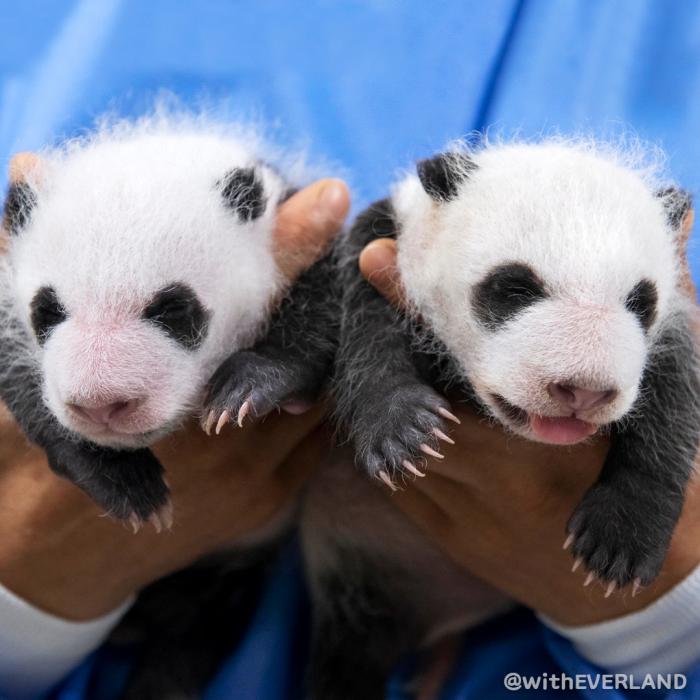 據(jù)報(bào)道,從公開的照片來看,這對(duì)大熊貓寶寶已開始慢慢長(zhǎng)胖,眼睛、耳朵、肩膀、胳膊、腿周圍,顯現(xiàn)出獨(dú)特的黑色斑紋。