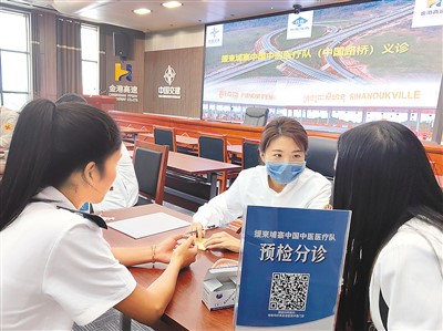 金港高速是柬埔寨第一條高速公路,是中柬共建“一帶一路”重點項目,柬埔寨本地員工占比達到88%。這里高溫高濕的工作環(huán)境,導(dǎo)致頸肩腰腿痛疾病及胃腸病在員工中高發(fā)。義診現(xiàn)場,中醫(yī)醫(yī)師用心傾聽每個員工的癥狀和困擾,望聞問切,耐心診察,辨證施治,制定個性化的治療方案。