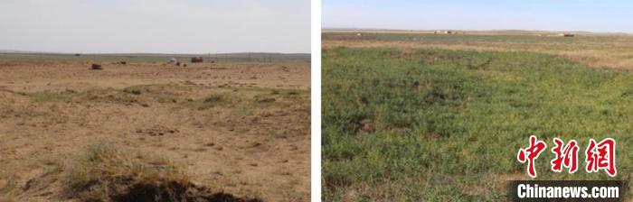 僅僅兩三年以后,退化放牧場(chǎng)植被蓋度就增加到40-60%,干草產(chǎn)量提高50%以上;退化打草場(chǎng)植被蓋度平均提高15-20%,干草產(chǎn)量平均提高20-40%;嚴(yán)重沙化草地植被蓋度達(dá)到40-50%或以上,風(fēng)蝕得以控制,周邊環(huán)境得到明顯好轉(zhuǎn)。