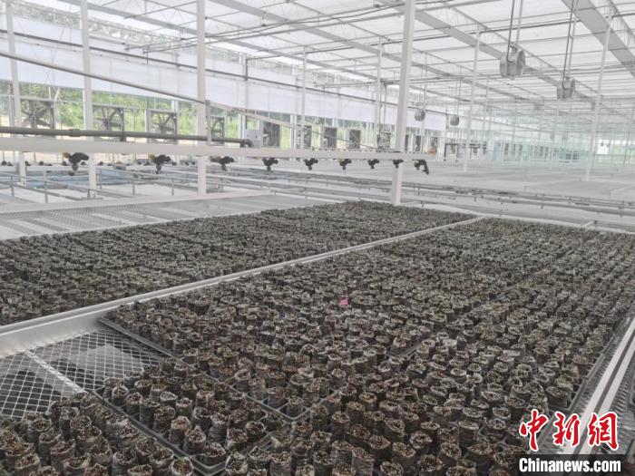 智能化溫室中正在培育的種苗,開(kāi)化縣十里鋪種質(zhì)資源庫(kù)供圖