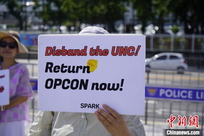 21日上午,韓國民間團體“和平統(tǒng)一開創(chuàng)者”在韓國總統(tǒng)府前的空地集會。有市民手舉“中斷韓美軍事演習(xí)”“立即收回戰(zhàn)時作戰(zhàn)指揮權(quán)”“反對北約成員國軍事介入朝鮮半島”等標語,呼吁韓美兩國停止軍演,要求廢除美國對韓國提供的“延伸威懾”。
