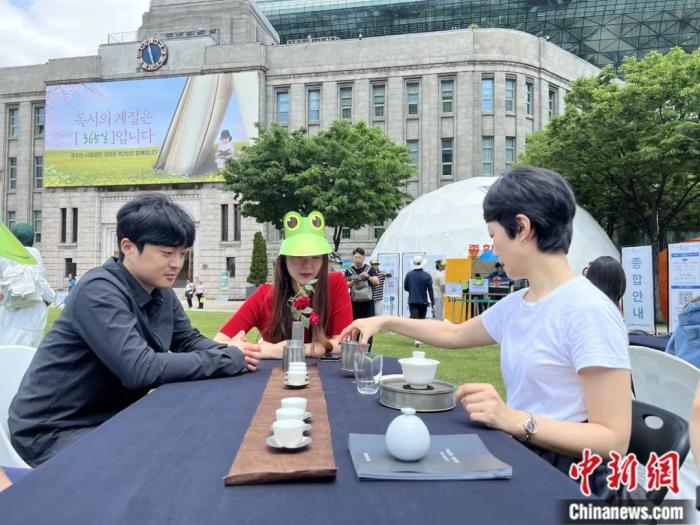 茶和天下活動(dòng)在首爾市市廳廣場(chǎng)舉行飲茶體驗(yàn)。劉旭 攝