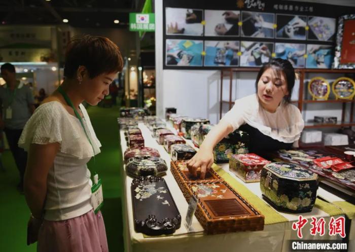 在浙江杭州舉行的第二屆中國(guó)國(guó)際茶葉博覽會(huì)上,一名參觀者被展出的韓國(guó)茶器吸引。王剛 攝