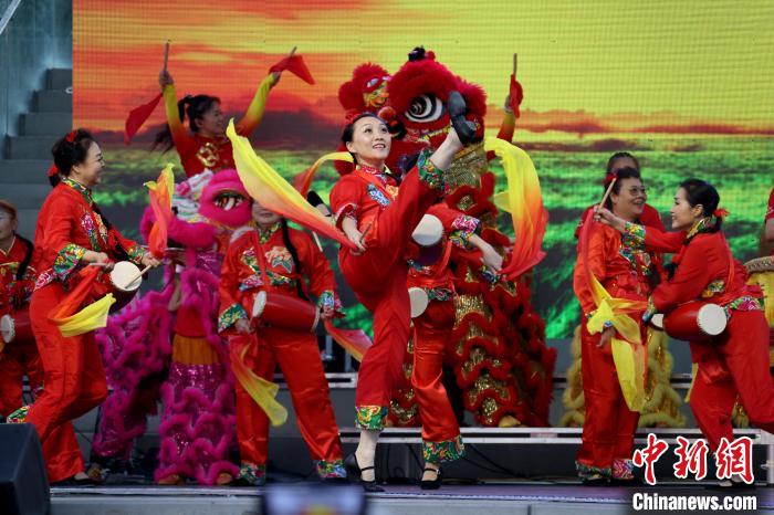 當(dāng)?shù)貢r(shí)間9月1日,加拿大多倫多,演員在第四屆龍文化節(jié)開(kāi)幕式上進(jìn)行腰鼓表演。 中新社記者 余瑞冬 攝