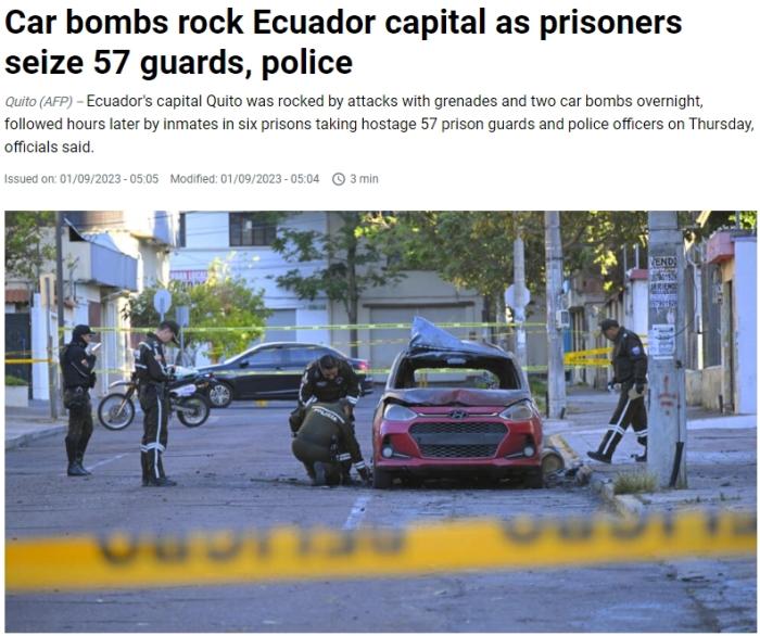 此外,當(dāng)?shù)貢r間8月30日晚至31日清晨,首都基多夜里發(fā)生兩起汽車炸彈攻擊事件,所幸未造成任何傷亡。