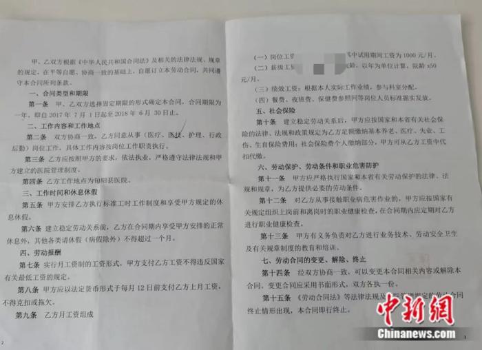 李月告訴中新網(wǎng),她是在醫(yī)院實行招聘制后進入,剛開始簽訂的勞動合同期限是三年。2017年開始,醫(yī)院與她重新簽訂聘用工作人員勞動合同書,合同期限為一年,此后勞動合同便都開始一年一簽,直到去年解除勞動關系。