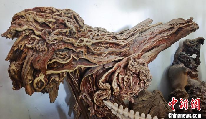 中新網(wǎng)新疆阿拉爾9月2日電(史玉江)一根腐朽的樹根,或許在別人眼里一文不值,可是在戴新看來,朽木可雕琢,那些腐朽的樹根不僅能做成工藝品,還能增收致富。“在阿拉爾這片土地上,各種樹根和朽木段,不管是沙漠中的,還是河道里的,只要我看上,都盡可能搬回來?!毙陆a(chǎn)建設(shè)兵團(tuán)第一師阿拉爾市“非遺”根雕傳承人戴新說,通過自己的雙手制作的根雕作品,讓他的生活樂趣無限。