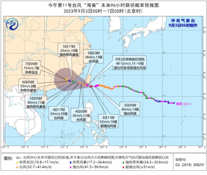 今年第11號(hào)臺(tái)風(fēng)“??蔽磥?lái)96小時(shí)路徑概率預(yù)報(bào)圖