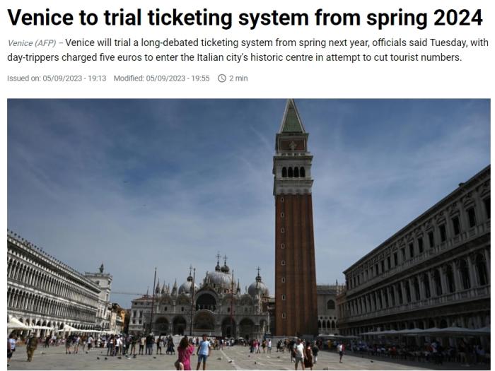 聲明還稱,這項措施的目的是“控制某些時段的一日游人數(shù),以配合這座城市的脆弱性和獨特性”。
