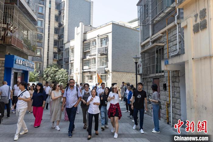 9月6日至10日,中亞五國青年代表團一行20人赴渝參訪。圖為代表團參訪重慶兩江新區(qū)邢家橋社區(qū)?!£惤?攝