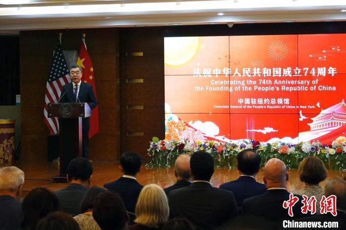 中國駐紐約總領事黃屏在講話中表示,74年來,中國大地發(fā)生了翻天覆地的變化,創(chuàng)造了世所罕見的經(jīng)濟快速發(fā)展和社會長期穩(wěn)定兩大奇跡。今年是改革開放45周年。改革開放不僅深刻改變了中國,也深刻影響了世界。當前中國已邁入新時代。新起點上的中國,將繼續(xù)以高質(zhì)量發(fā)展和高水平開放給各國提供新的機遇,給變亂交織的世界注入寶貴的信心和力量。