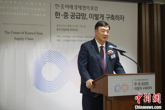 中新網(wǎng)首爾9月14日電 (記者 劉旭)14日,由韓國(guó)亞洲新聞集團(tuán)與中國(guó)建設(shè)銀行共同舉辦、中國(guó)駐韓國(guó)大使館、韓國(guó)產(chǎn)業(yè)通商資源部支持的“第三屆中韓未來經(jīng)濟(jì)合作論壇”在首爾舉行。