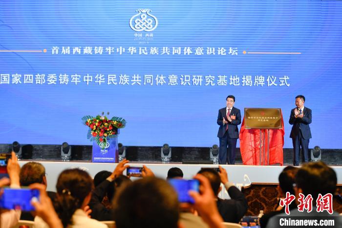 開幕式上,段毅君和西藏自治區(qū)黨委常委、宣傳部部長(zhǎng),西藏自治區(qū)著力創(chuàng)建全國(guó)民族團(tuán)結(jié)進(jìn)步模范區(qū)專項(xiàng)組副組長(zhǎng)汪海洲為國(guó)家四部委“鑄牢中華民族共同體意識(shí)研究基地”揭牌。