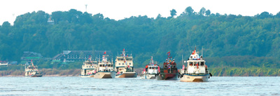 瀾滄江—湄公河從中國(guó)關(guān)累到泰國(guó)清盛一段航運(yùn)最為繁忙,大量物資在中老緬泰四國(guó)間運(yùn)輸往來。裝滿貨物的各國(guó)商船在水面上來回穿梭,一片繁忙;兩岸村莊升起裊裊炊煙,一片祥和。長(zhǎng)期在湄公河上跑船的一名船長(zhǎng)說:“有聯(lián)合巡邏執(zhí)法編隊(duì)在,我們跑船很放心。感謝四國(guó)聯(lián)合巡邏執(zhí)法為湄公河帶來了安寧!”