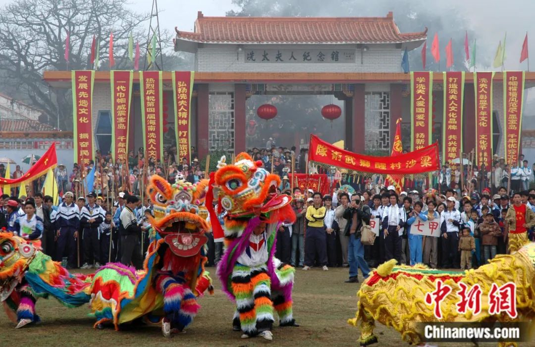 如今,海南島各地建有400多座規(guī)模不等的冼夫人廟。民眾自發(fā)組織緬懷冼夫人的祭祀信俗活動,經(jīng)過長期的歷史傳承、時(shí)代演變,逐漸發(fā)展成為了海南流傳最久、分布最廣、最隆重?zé)狒[的傳統(tǒng)民俗節(jié)日——“軍坡節(jié)”。2014年11月,基于海南軍坡節(jié)和廣東年例而形成的冼夫人信俗,被列入第四批國家級非物質(zhì)文化遺產(chǎn)名錄。
