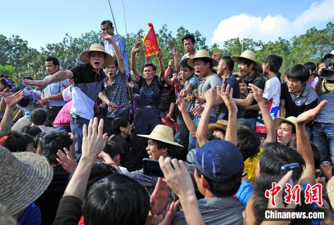 在海南鄉(xiāng)村,每年農(nóng)歷二、三月之間,村鎮(zhèn)將會舉行熱鬧的“鬧軍坡”活動。這是海南人的重大節(jié)日之一,起源一般都認(rèn)為是以紀(jì)念冼夫人為主。駱云飛 攝
