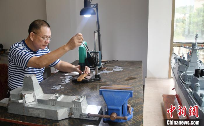 近40年的“造艦”生活,也讓潘雄體會(huì)到許多不易和堅(jiān)守。“做模型的技術(shù)對(duì)于建筑出身的我來(lái)說(shuō)不是難題,對(duì)艦船的愛(ài)好和制作模型的耐心才是最重要的。”潘雄稱(chēng),自己剛開(kāi)始制作“昆明號(hào)”驅(qū)逐艦時(shí)并無(wú)多少資料可查,每天下班吃完飯后就在工作臺(tái)上研究艦炮、桅桿、艦島的整合安裝和細(xì)節(jié)對(duì)接,經(jīng)常做著做著就到了凌晨。
